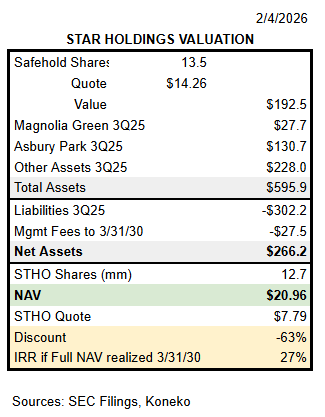Star is not going to complete its liquidation by the original goal of March 2027, however progress over the past year makes a 2030 completion realistic. STHO repurchased 0.4mm of shares in 3Q25 and the opportunity for more capital returns should improve as assets are monetized.